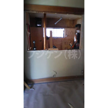 居間とダイニングの間の壁をくりぬく