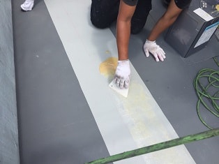 シートを接着剤で貼るだけなので施工性に優れており、複雑な形状や狭い場所でシート同士のジョイントがたくさん発生した場合でも、シート同士を熱風で溶かして一体化できます。